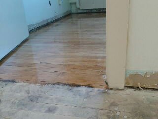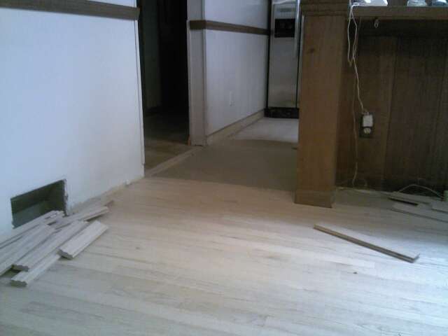 We can remove existing kitchen flooring and replace with solid hardwood. Maintenance is EASY!!